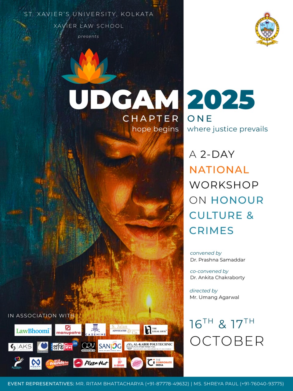 Xavier Law School proudly presents Udgam 2025 – Chapter One, a two-day National Workshop on “Honour Culture & Crimes”, scheduled for 16th & 17th October, 2025. The event aims to spark critical dialogue, artistic expression, and intellectual engagement around one of the most pressing socio-legal issues of our times.